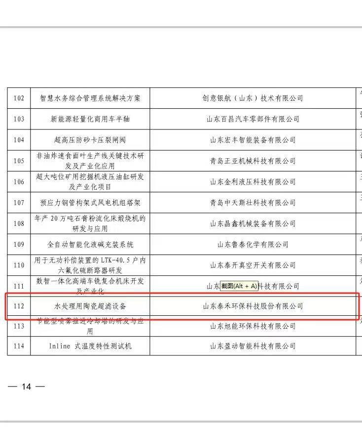 祝賀公司產(chǎn)品“水處理用陶瓷超濾設備”